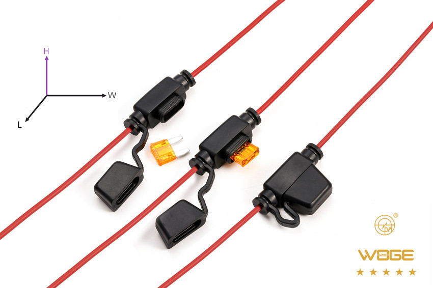 The harness fuse holder is an application that requires AB19 circuit protection, fuse (1A-40A), and series fuse holder. The standard products are listed in the data sheet, and the wire length and insulation color can be customized according to requirements. Wires are also available on request. All UDFs have minimum ordering requirements. Contact WGOEFUSE sales representative for details.
